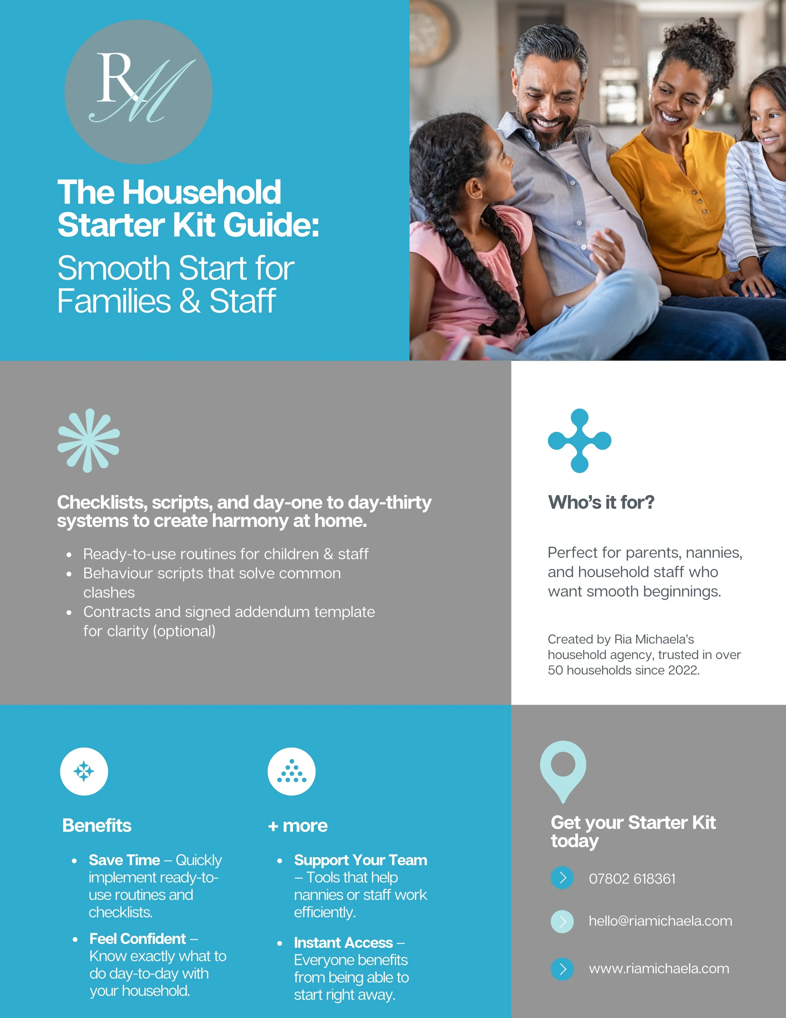 The Household Starter Kit is a comprehensive solution designed to help families create structure, clarity, and ease within their home. It provides guidance on staffing, household management, and practical tools that simplify daily life, making it suitable for both new and experienced families.